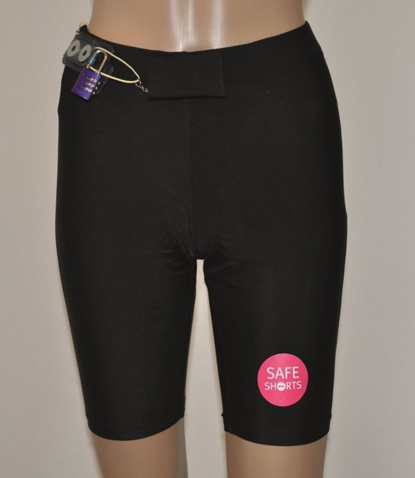 短裤具有多层保护措施。首先是裤子的束带,这些束带被难以撕裂或切割材料。第二个是组合锁,如果不打开裤子,并且没有绑定板块,则可以抵抗拉下裤子。第三个是裤式区域中的软保护器,它抵抗了佩戴者腿之间的柔软裤子的任何撕裂。最后,在任何篡改的情况下,也会在裤子上附着一个警报,该裤子会产生响亮的声学信号(130分贝)。警报也可以通过急剧拉动拖船来自愿触发,这可能有助于吓take攻击者并引起人们的注意。