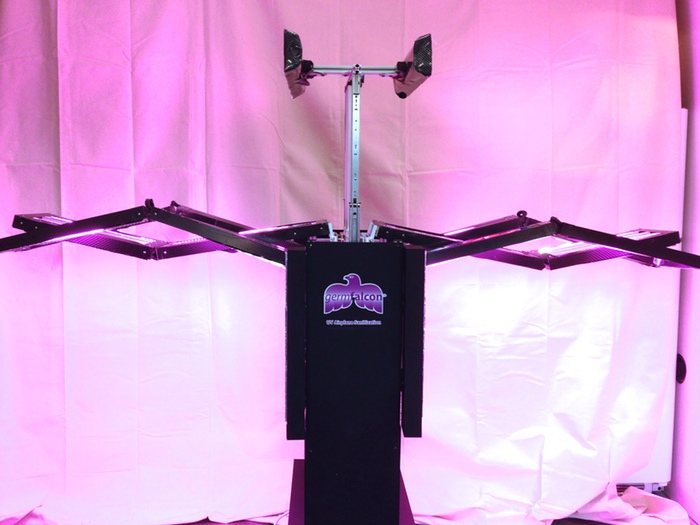 Germfalcon是一个可定制的解决方案,它可以用来清洁小巷,厕所和其他领域有限的方法。它还包含球迷和HEPA过滤器来吸引和陷阱的尘埃粒子。