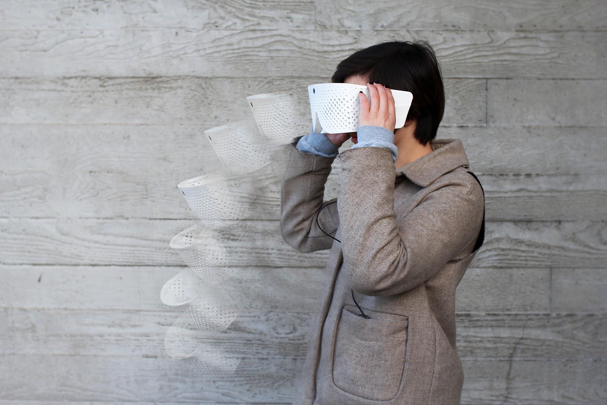 面具有两个折叠目的;提高视力和锐化的听力能力。该发明来自一小群学生在伦敦的皇家艺术学院。两种掩码类型均处于原型阶段。第一个旨在封闭一个人的耳朵,嘴和鼻子。通过使用定向麦克风,即使在嘈杂的环境中,佩戴者也可以在孤立的声音上靶向。目的是让佩戴者瞄准人群中的某个人,并听他或她,而无需周围的噪音。第二个原型是专为眼睛设计的。是蒙版的一部分捕获视频的相机,将其发送到一台计算机上,该计算机为其添加效果并重新播放蒙版佩戴者的视频,所有这些都是实时完成的。效果与长时间的摄影相似。