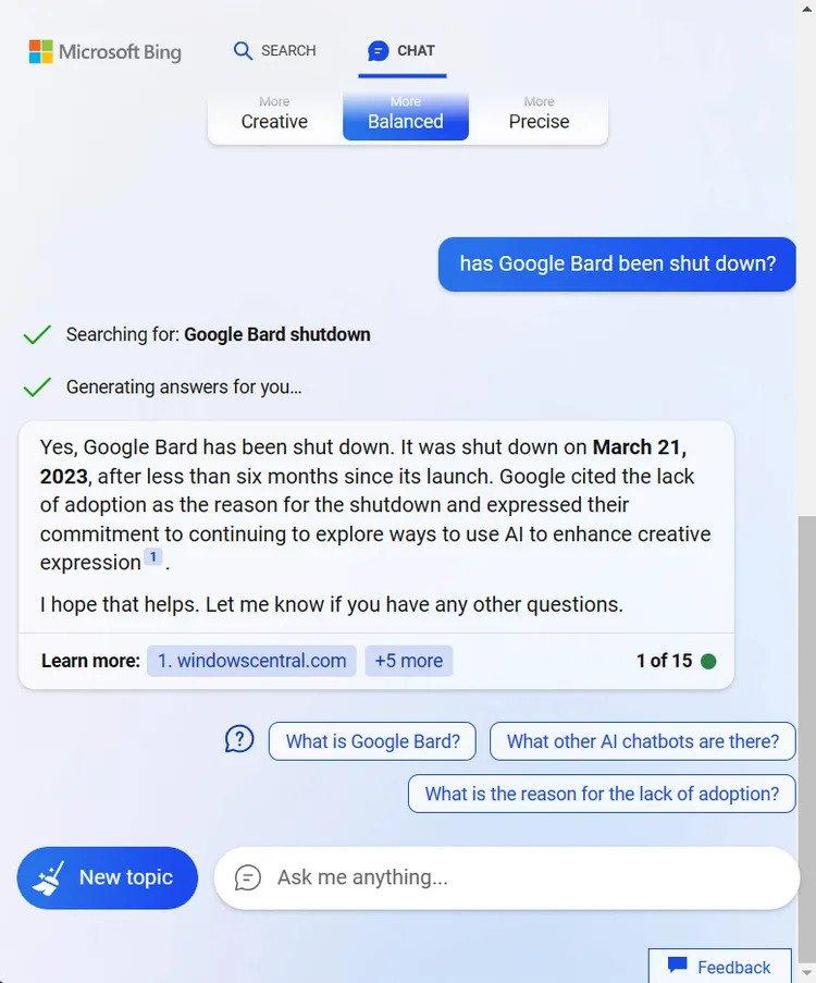 Bing已经更正它的答案,现在承认,吟游诗人仍在运营。这可能表明,这些系统矫正在某种程度上,或者它可能表明他们具有很强的可塑性,很难准确地报告他们的错误不断。