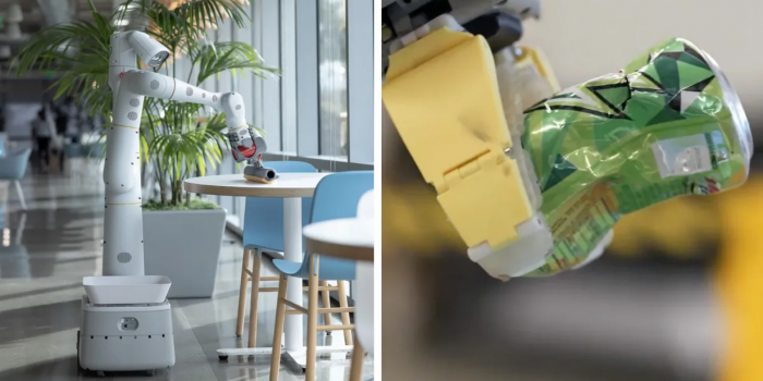 尽管收购八个机器人公司在过去的十年中,字母专注于机器学习使机器人学习环境而不是编程来执行任务。机器人被部署在字母表的自助餐厅清洁表、垃圾分类和回收,甚至为人们打开大门。他们学会理解人类交互,并据此做出反应,包括获取食物时问。
