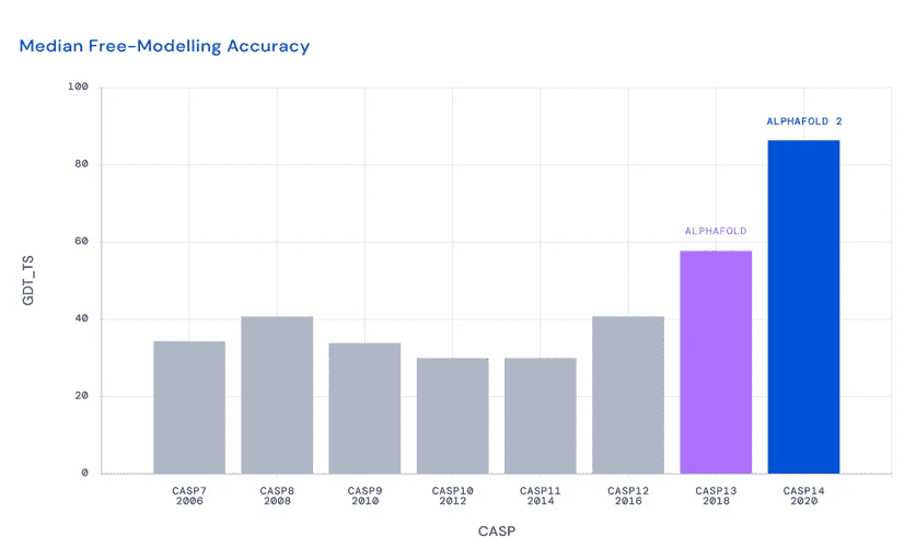 多年来,各种团体一直在研究它;然而,最近,DeepMind对人工智能方法的深入了解大大增加了这方面的努力。去年,DeepMind的程序AlphaFold在两年一度的蛋白质结构预测挑战赛CASP(结构预测临界评估)中击败了大约100个其他团队。计算生物学家John Moult是CASP的联合创始人之一,他说:“从某种意义上说,蛋白质折叠的问题已经解决了。”