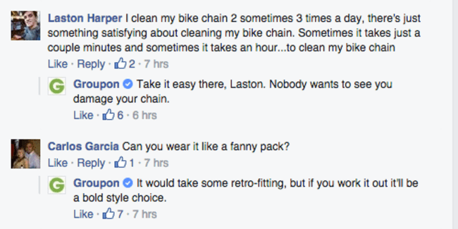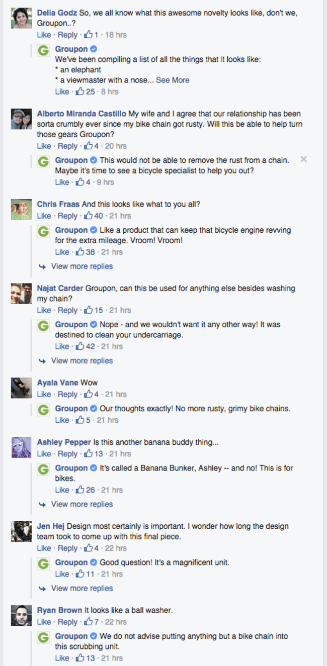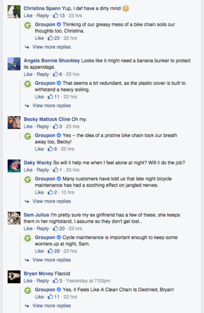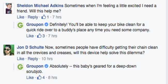 Groupon最近发布了一个新的自行车链清洗设备和整个互联网笑 工程师 2015年6月5日 0 推特 脸谱网 Google + Pinterest Tumblr Linkedin Reddit 电子邮件 广告 我们都知道Groupon,对吧?如果你还不知道,这是一个公司,已经成为著名的出售一些显然带着暗示性的物品,每次他们的Facebook页面是超级疯狂。这一次,他们想出了一个自行车链和擦洗设备清洗。你可以看看下面。 是的,我们知道你在想什么,但是,它是严格只一辆自行车链洗和擦洗设备可以从下面的Facebook页面交互。开怀大笑,让我们知道你的想法的产品和Groupon的策略来处理它。 广告