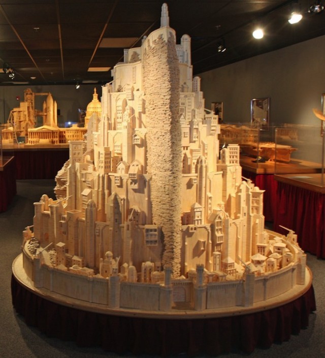 Ripley的信不信由你,许多Acton的杰作。实际上,该公司购买了大量工作。但是,米纳斯·蒂里斯(Minas Tirith)位于爱荷华州格拉德布鲁克(Gladbrook)的火柴奇迹博物馆中。除了420,000个火柴棒外,该市还获得了24,000个木制砌块,构成了该市出现的山脉。