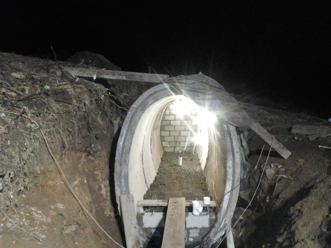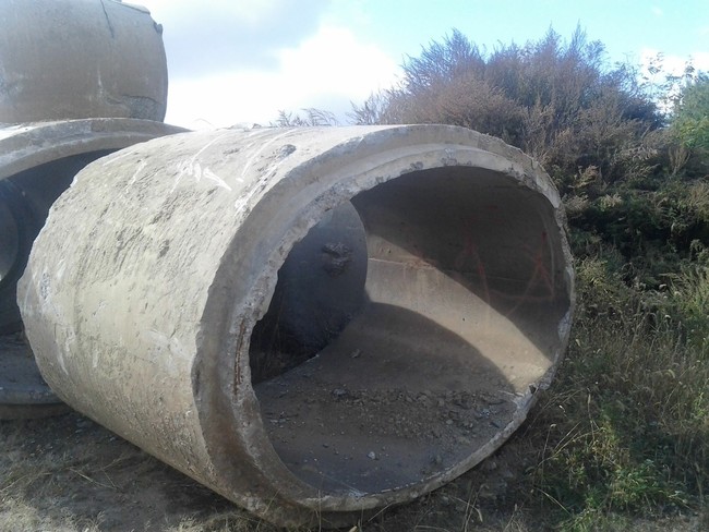 这个人从巨大的水泥管道开始,这些管道通常会埋在公路下面。