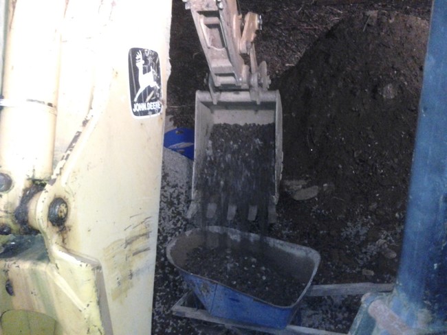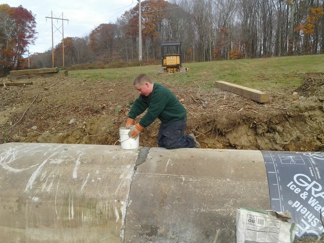 把管子固定在一个地方之后,下一步就是用泥浆把大水泥管左右的缝隙填上。