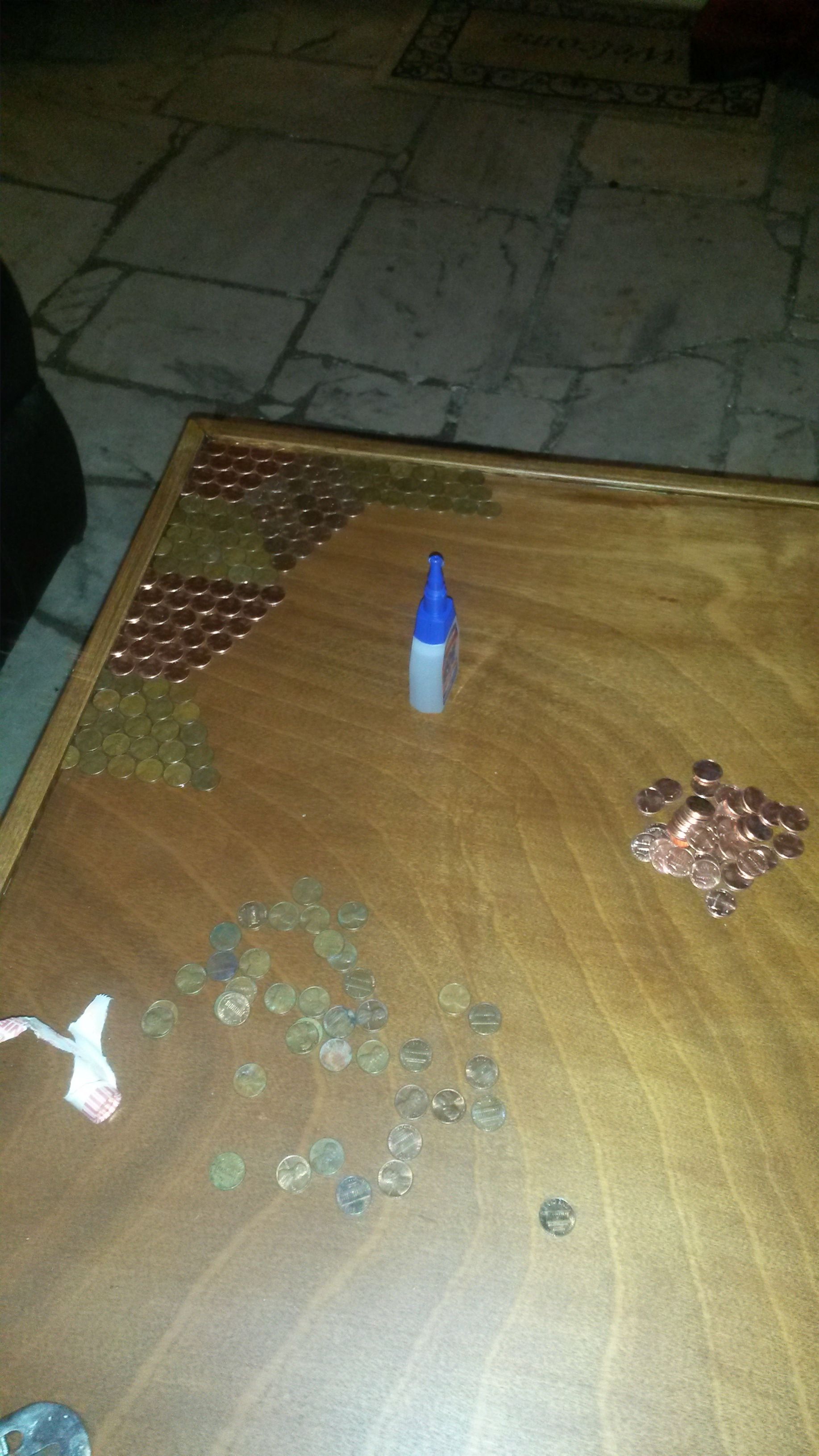 利用一个吹风机,确保消除泡沫,并使便士看起来好像他们下面一层水。