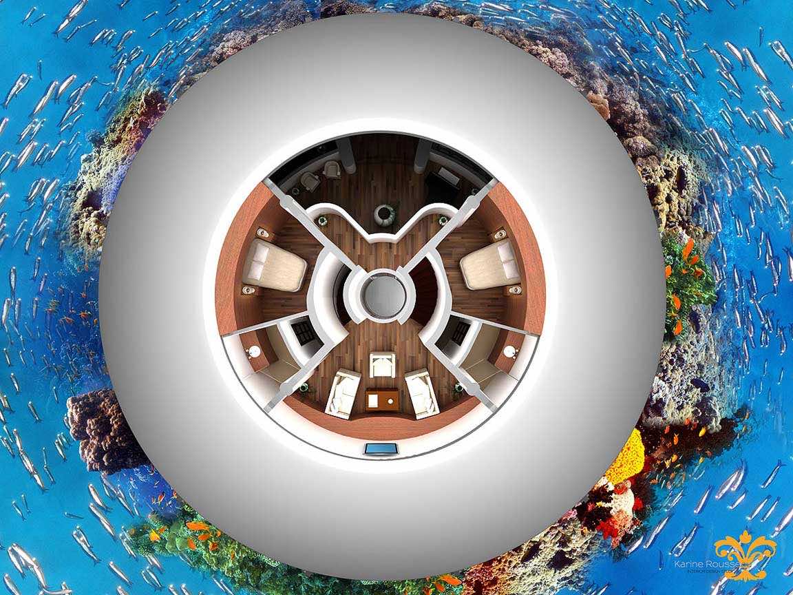 面向大海的较低楼层的所有墙壁都采用了亚克力板。它们将使居民能够看到一块块海洋的全景。总部位于迪拜的一家公司为五星级酒店和超级游艇内部提供家具。也就是说,客户将完全控制定制这个家,因为他们认为合适。它配备了外部灯和喂鱼器,以吸引海洋生物到家里来。