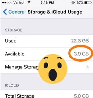 这样的时代早已过去。你可以遵循这个有用的技巧来释放空间,但首先,你需要在手机上有几mb的可用空间。您可以通过进入设置来检查剩余的存储空间。点击“常规”,然后进入“存储和iCloud使用”。你会看到类似这样的东西。