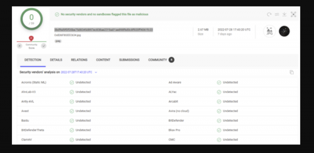 根据Securonix的说法,防病毒仍未检测到载有恶意软件的图像。