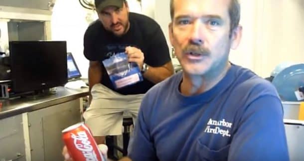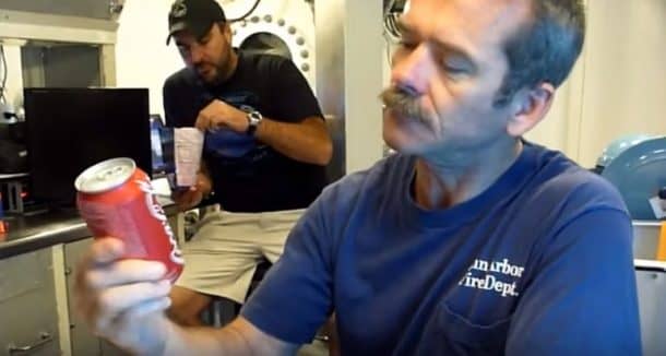 他的奇怪的实验之一是当他打开汽水可以在海底的潜艇。
