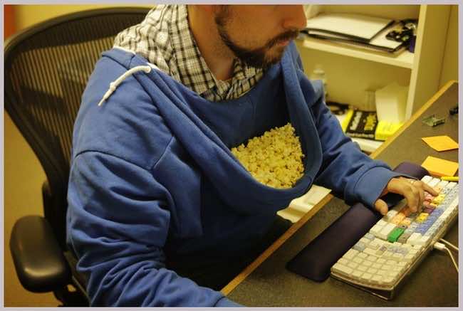 把连帽衫穿反了,你会得到这个爆米花袋!