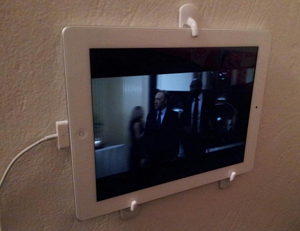 10.使用墙钩将iPad连接到墙上。