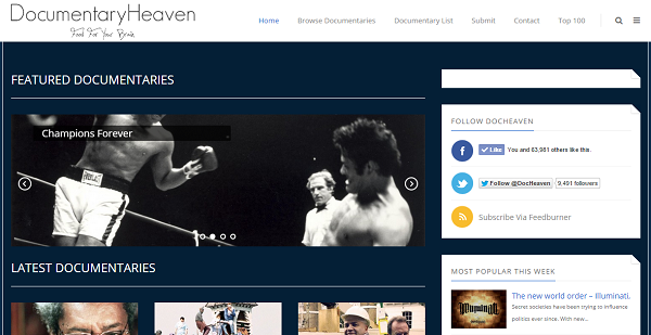 6。DocumentaryHeaven.com是,一个纪录片天堂。