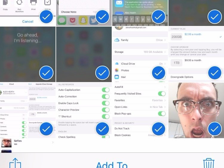 6.在“照片”应用程序中,你可以通过手指在想要选择的照片上滑动,一次选择多张照片。