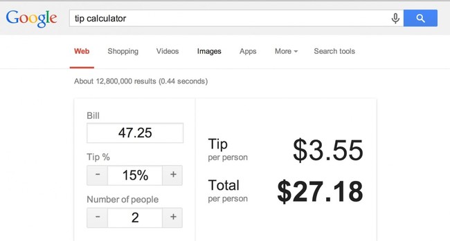 这里有18个很酷的技巧,你今天可以试试谷歌 工程师 2015年2月25日 1 推特 脸谱网 谷歌+ Pinterest Tumblr Linkedin Reddit 电子邮件 广告 我们都非常依赖谷歌。但是,你知道如何使用著名的搜索引擎获得最大的利益吗?我们愿意打赌,谷歌能够为你做的这18件惊人的事情你不会做。看看这个列表,在下面的评论部分告诉我们你的看法。 18.谷歌Sky让你通过太空望远镜拍摄的图像进行太空探索。 17.谷歌公共数据将允许您查看一些惊人的可视化统计数据。 16.谷歌抵押计算器将帮助您完成有关您的房屋购买。 15.当你计划通过投票或调查收集信息时,表单真的可以帮到你。 14.谷歌可以像这样转换! 13.高亮搜索应用程序将使你更容易找到与你在一篇文章中读到的东西相关的更多信息。 12.飞行状态和跟踪可以通过谷歌完成。 11.谷歌Keep应用程序可以让你跟踪你的项目,帮助你提高工作效率。 10.谷歌可以解决您的统计和数字查询。 9.Ngram会告诉你某个词或短语什么时候开始流行。它可以回溯到1600年。 8.谷歌也可以帮你计算小费! 7.谷歌字典是一个应用程序,工作得很好! 6.只需上传图片,找到它的来源-反向图像搜索。 5.谷歌也可以作为一个计时器! 4.通过使用谷歌地图的地球视图,当您在谷歌Chrome打开一个新选项卡时,您将获得来自世界各地的美丽地区的惊人高清图片。 3.谷歌Fonts将让您驻留在免费字体的公共数据库中。 2.输入一家公司的股票信,了解它在市场上的表现。 1.比较卡 广告