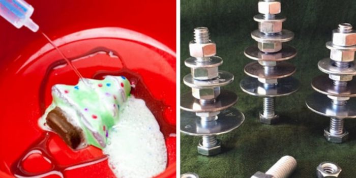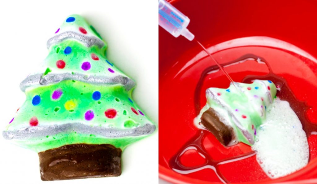 这些产品经历了可能形成泡沫糊的过程。为该项目创建的圣诞树形模具也将变成一团糟,但这是使您的孩子学习一些基本酸如何相互反应的好方法。