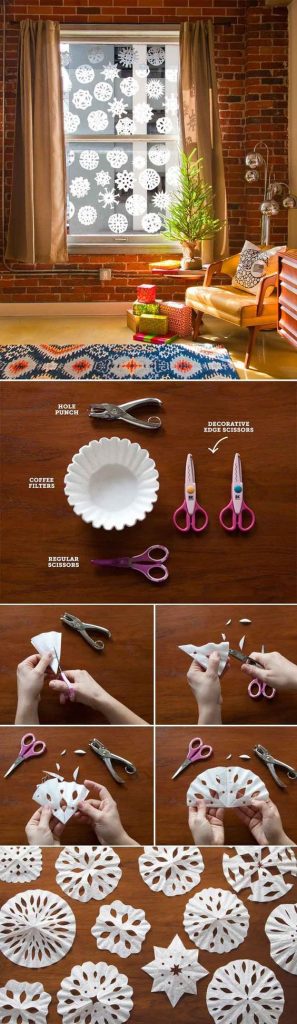 7.用咖啡过滤器雪花遮盖窗户