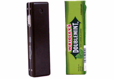 最小的摄像机与平均的口香糖小包一样大。它可以在1 GB内存中连续录制2小时的视频。你可以得到一个这里