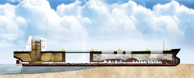 全球经济非常依赖石油,而石油依赖于这些将其从一个地方运输到另一个地方的巨型船只。这个论点看起来似乎这些船只的唯一任务就是运输它们没有其他用途,对吧?然而,一组建筑师提出了一个关于如何将这些船只作为基础设施重新使用的建议。