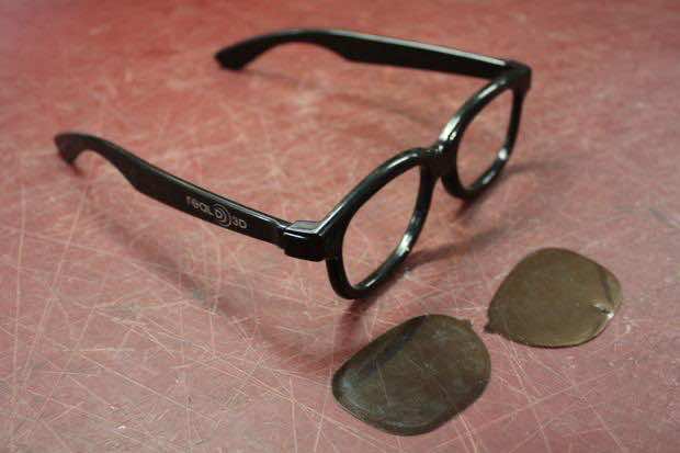 如果有必要的话(如果是3D眼镜的话),可以把镜片从眼镜上取下来或撬开。