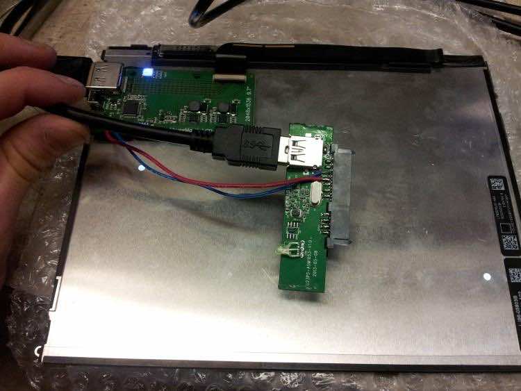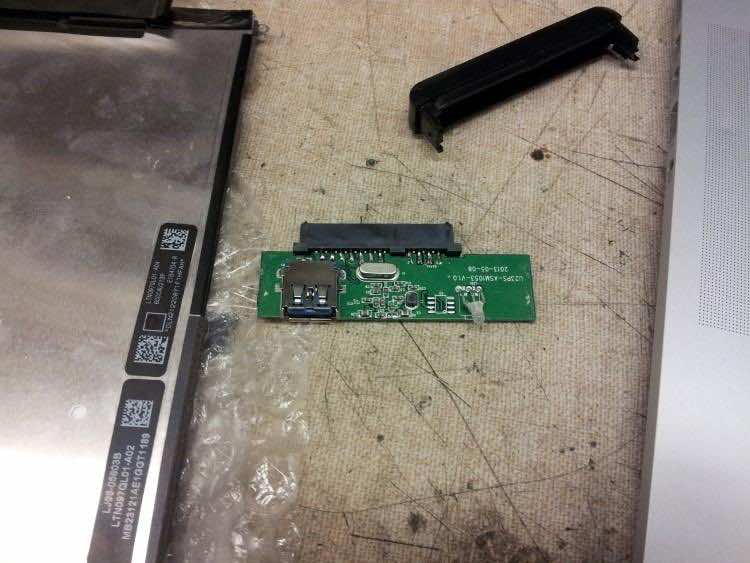 关键是要欺骗你的电脑,插入设备是一个USB 3.0高功率设备,你需要去买10美元外部USB 3.0硬盘外壳。添加跳线之间的液晶驱动板和电源插脚外壳板,你是好去。最终结果将类似于下面的图片。