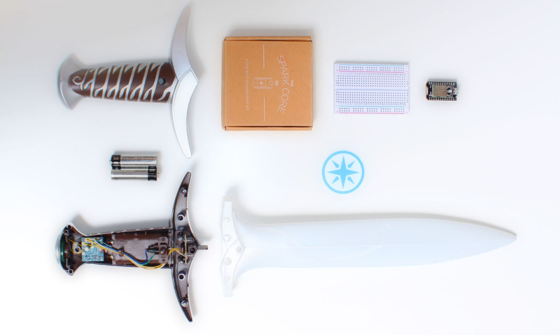 这个DIY项目使用一把玩具复制品剑,并需要在其中添加一个Spark Core单元。Spark Core单元是一块支持Wi-Fi的Arduino板,利用了剑的技术。爱游戏ayx体育这把剑的技术包括灯光功能、执行器和运动传感器,只要稍加调整,就可以在检测到未受保护的Wi-Fi网络时点亮它。