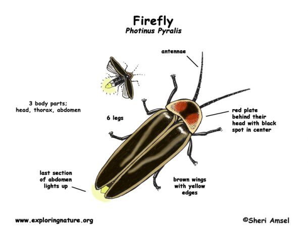 在光细胞中,存在荧光素酶。这些酶与产生光的荧光素分子混合,荧光素分子由氧气和能量储存ATP催化。结果形成了一种化合物,氧荧光素,它的原子中有多余的能量,以光的形式释放出来。这种光通过苍蝇臀部的透明部分可见。