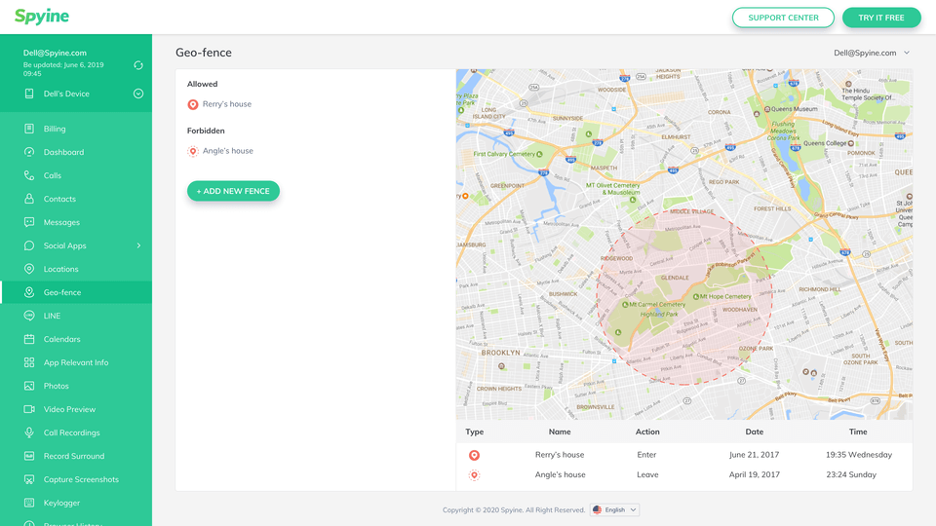 如果你需要知道目标手机的位置,那么只需在地图上按照设备设置一些界限。当设备经过这些标记点时,您将了解设备的当前位置。它还可以让你很容易地知道以前的位置。