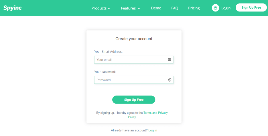 步骤1:作为第一步,只要去官方Spyine网站,并注册一个帐户。在这里,您需要提供您仍在使用的电子邮件id。