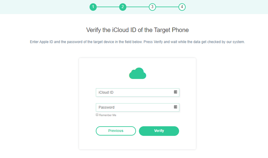 步骤3:现在,如果是iOS设备,只需在屏幕上显示设备的iCloud详细信息。如果是安卓手机,你需要在目标手机上安装应用程序。这个过程将需要一些时间,根据你需要绘制的信息量,所以只需等待一段时间,直到应用程序同步。