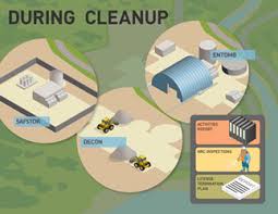 货车带有低级放射性的碎屑,并装在鼓,袋子和大尺寸容器中。工人检查并记录碎屑的辐射水平,然后将物品从坡度以下8英尺掩埋到坡度以上38英尺的沉积岩石中,并用粘土和岩石覆盖。