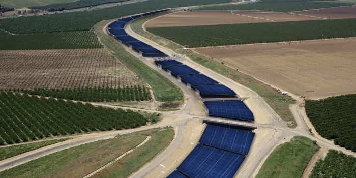 罗杰·巴雷斯(Roger Bales)是该项目的一部分,也是加利福尼亚大学的著名工程学教授写,“在2021年的一项研究中,我们表明,使用太阳能电池板覆盖所有4,000英里的加利福尼亚运河,每年通过减少蒸发来节省超过650亿加仑的水。这足以灌溉50,000英亩的农田或满足超过200万人的住宅水需求。通过将太阳能设施集中在已经被使用的土地上,而不是在未开发的土地上建造它们,而是有助于加利福尼亚州实现其水和土地资源的可持续管理目标。“