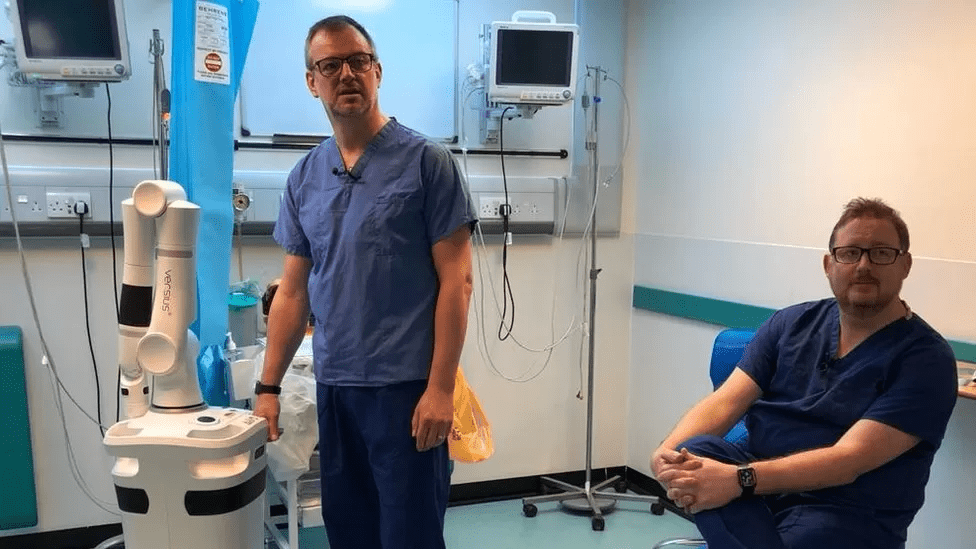 外科医生使用Versius下一代机器人在英国首次成功实施了这一手术。患者马丁·纽金特(Martin Nugent)接受了一次成功的食道切除术,从食道上切除了一个6厘米长的肿瘤。