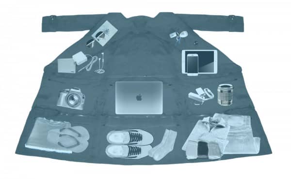 “随着航空公司开始收取高架行李的费用,并严重限制了低票价经济旅行者的行李津贴,我和我的搭档设计了一件模块化夹克,使您可以穿笔记本电脑,平板电脑,两双鞋,鞋子,两双鞋,一条牛仔裤,五件T恤,套头衫和SLR相机。它总计14个深口袋,其中包括髋关节长度的8个口袋,四分之三长度的11个口袋和全长14口袋。它包括两个可拆卸的口袋面板和一个随身携带的行李袋。”
