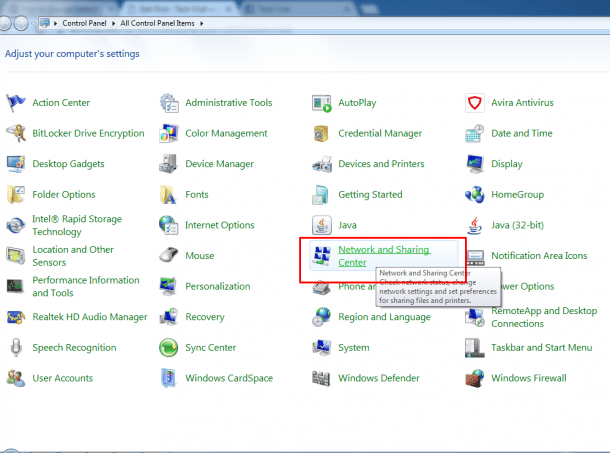 步骤1。去控制面板>网络和网络选项。
