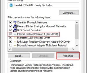 步骤4。屏幕左侧的选择>互联网协议版本4 (TCP / IPv4)去>属性。