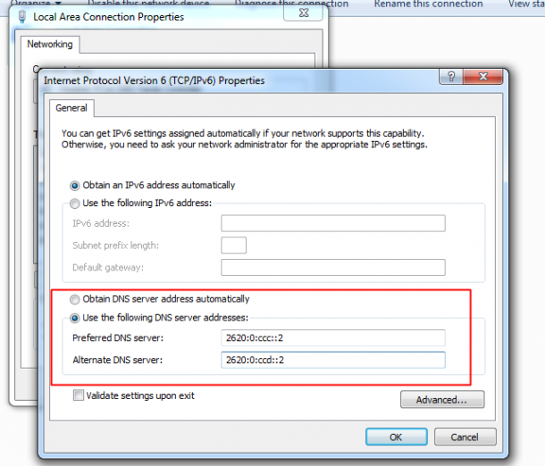 步骤6。单击>好吧现在您已经配置了IPv4,继续和配置>互联网协议第6版(TCP / IPv6),同样与后服务器;