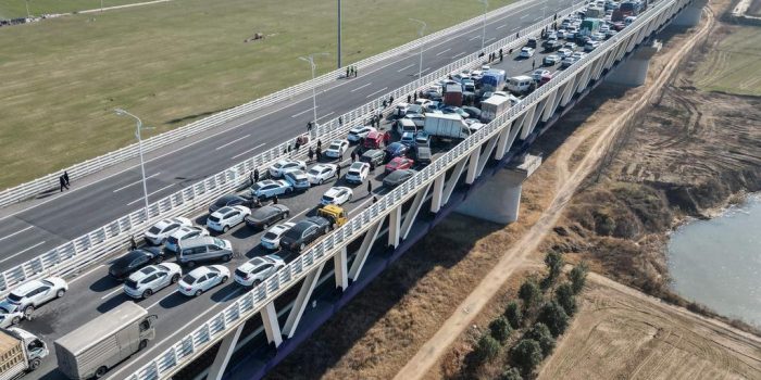根据由郑州交通管理局的声明中,当地交警两小时前发布了一份通知,禁止所有的汽车由于大雾天气桥下通过。正新黄河大桥是一个很大的立交桥,在黄河附近连接郑州和新乡。42-second视频发布在中国的类似推特的微博平台显示行受损轿车和卡车,蜿蜒在桥上拍摄,拍摄的人。
