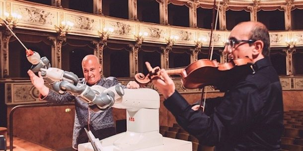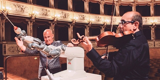 机器人首先对独奏会进行了排练,同时记住了居民导体安德里亚·哥伦比尼(Andrea Colombini)的手势和手势。Yumi由瑞士公司ABB设计,在执行的18件作品中,进行了3件。