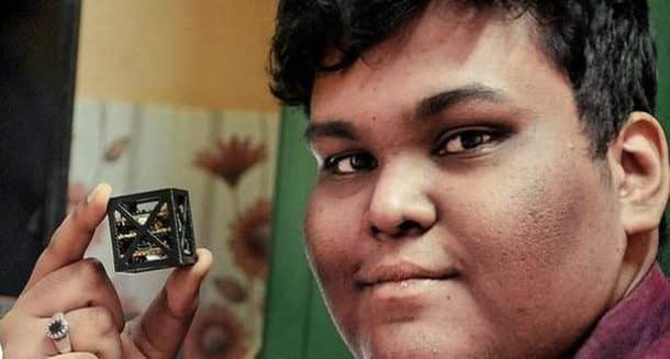 在太空竞赛的立方体,Rifath Shaarook想出了世界上最轻的卫星设备。立方体的空间是一个风险Idoodlelearning支持由NASA和科罗拉多空间格兰特财团。印度18岁少年得分第一位置的所有条目之间的竞争。微小卫星,现在叫KalamSat卜杜尔卡拉姆之后,印度的核科学家和前总统。学校学生们面对的挑战来创建一个设备必须是有价值,有重量不到64克或0.14磅,比四只13英尺立方体。