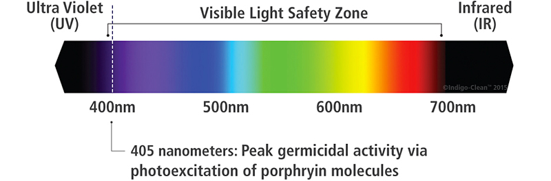 它利用特殊且独特的LED,以405nm的波长发出光线。光线可见,但不像明亮的白光,而是带有蓝色的触感。Kenall Manufacturing具有许可证,靛蓝清洁系统应推出到北美市场。
