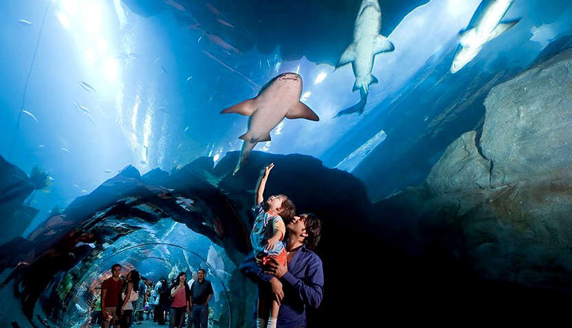 迪拜水族馆有一个270度的步行隧道,由玻璃制成,可以近距离观看水族馆。水族馆有月球周期闪电系统,翻译成;坦克根据一天中的时间改变它的环境。在这个购物中心的第二层,你会发现Reel Cinemas电影megaplex,总共有22家影院。