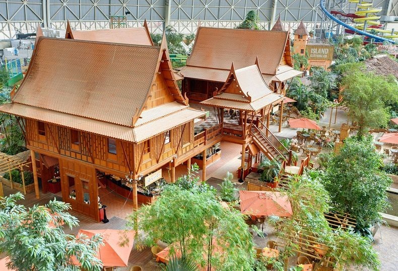 在200米长的人造海滩上,游客可以在26摄氏度的温度下游泳。大海被沙滩勾勒出来,还有一些小的热带岛屿,这些岛屿通过捕草来装饰。你还会发现许多亚洲著名建筑的再创作;吴哥窟、巴厘寺门等。你可以看到大量的佛像,还有池塘和运河贯穿遗址。