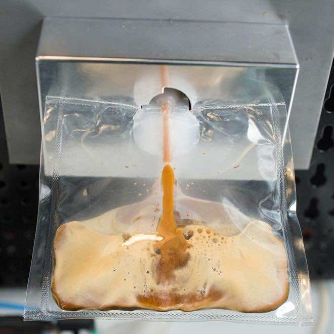新的抽吸和加压方法已创新并使其兼容空间。除了这些修改之外,咖啡机或多或少是同一件事。只需将胶囊放在顶部,翻转渔获量,按下按钮,并确保塑料袋在喷嘴下面。正如预期的那样,对前ISS居民的一项调查显示,最怀疑的家庭舒适之一是早上咖啡。