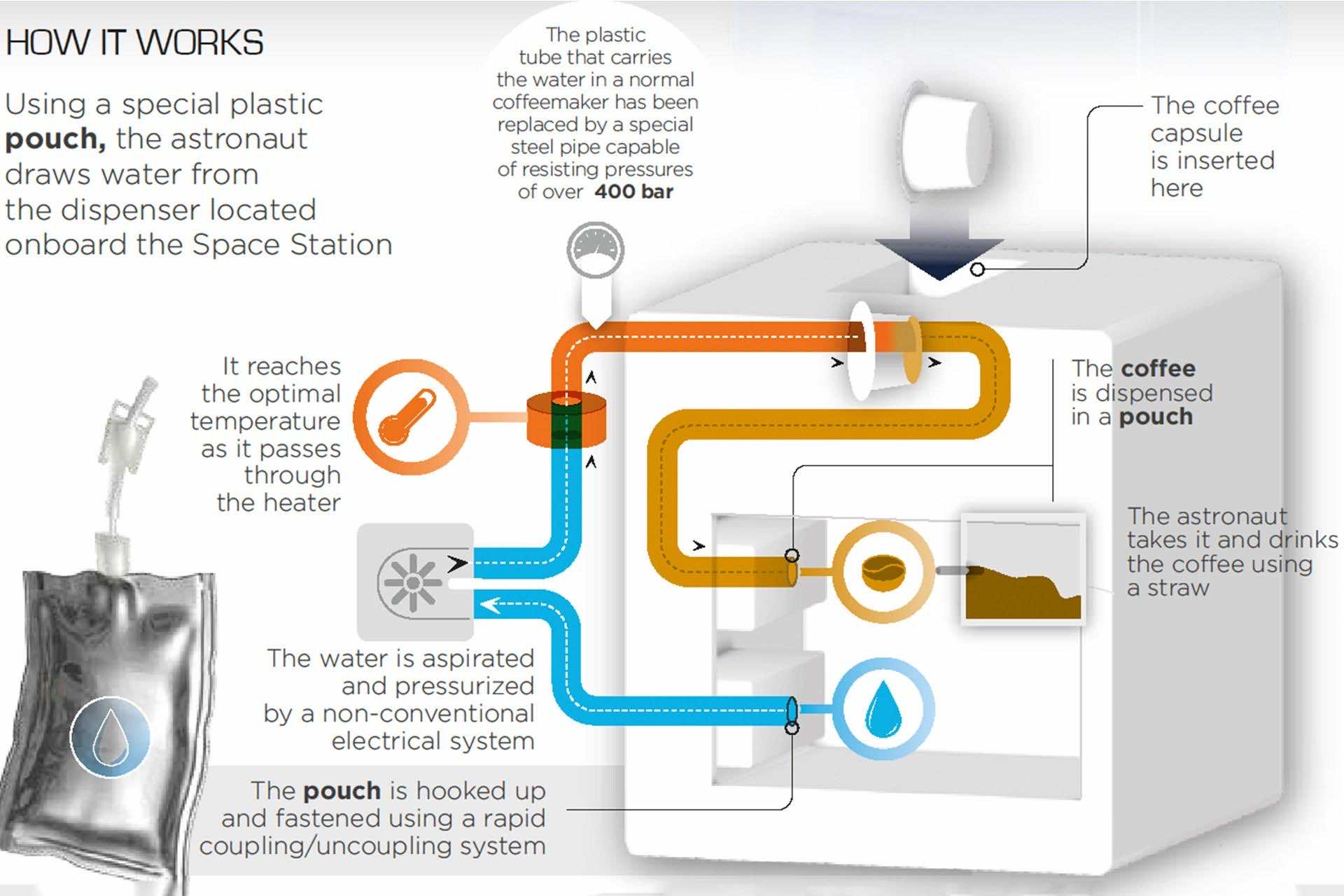 显然,缺点是,无论您喝哪种咖啡,您都会通过稻草从袋中s饮,因为您不能冒险将内容溢出到太空中。Lavazza曾与意大利航天局与Argotec合作,该公司一直为欧洲航天局提供太空食品,其唯一目的是为ISS提供咖啡机。