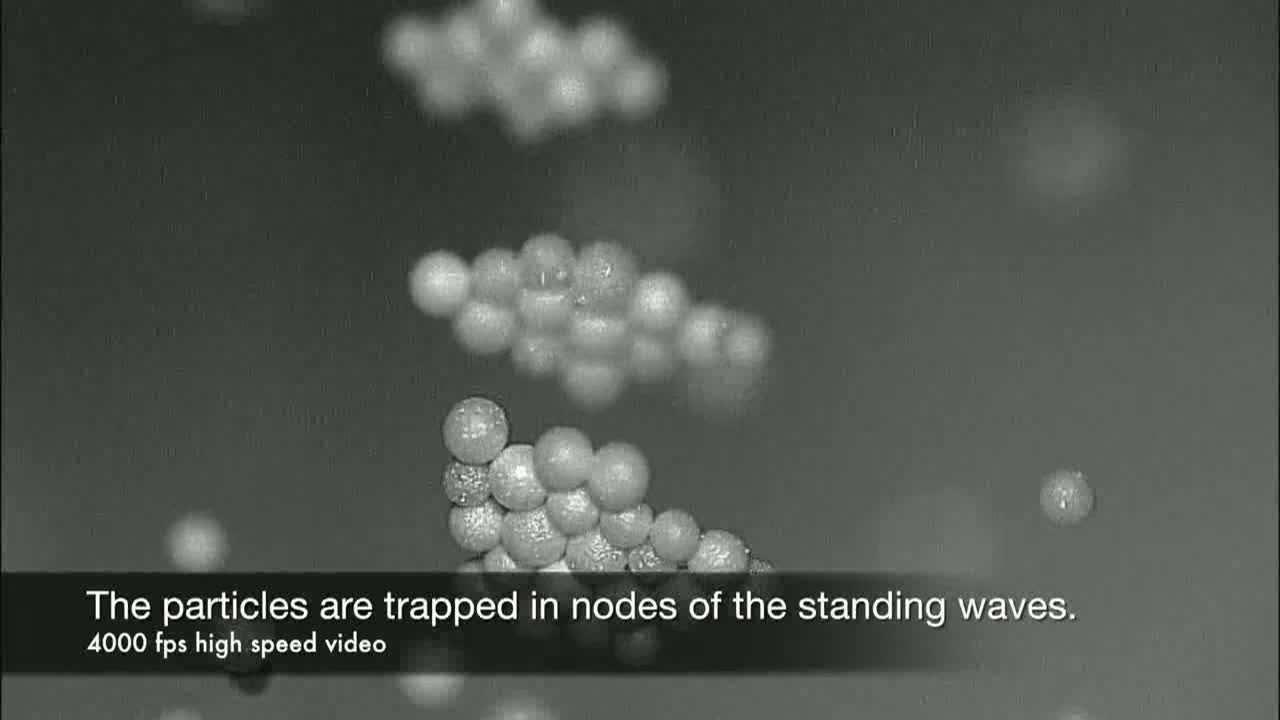 这三位科学家发布了一段视频,展示了一些与声悬浮有关的实验,以及他们是如何利用声音的力量的。他们进行了一些高强度的实验,包括螺栓、钉子、液滴和木片的悬浮。