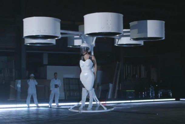 这款电池驱动的飞行器/裙子并不是由Gaga驾驶的,而是由一名技术人员通过远程控制驾驶的。裙子飞到离舞台地面70英寸的高度。瓦兰提斯的设计由六边形排列的六个臂架组成。每个吊臂都有两个电动机,为吊臂内的碳纤维螺旋桨提供动力。下图展示了Volantis的工作原理: