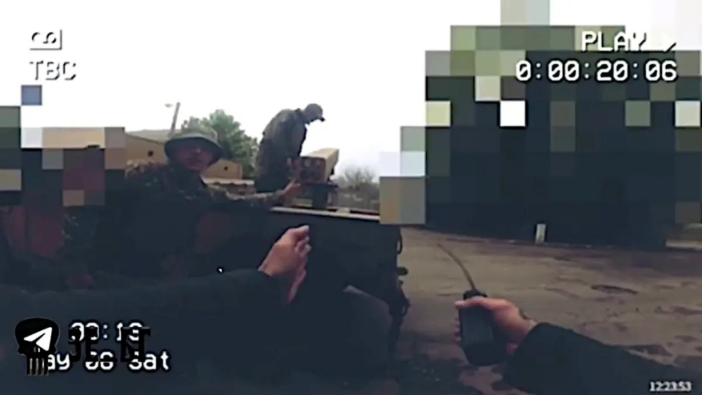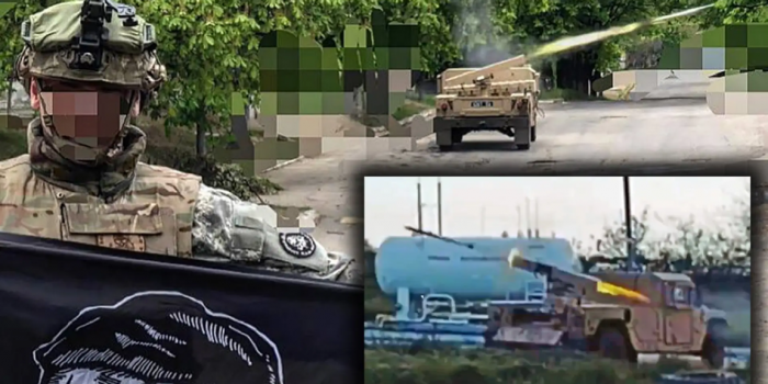 视频剪辑功能至少一个装甲M1152A1悍马装备一个阿诺德防御LAND-LGR4 four-shot发射器发射火箭被认为是先进的精密杀死火箭武器系统II (APKWS II)。剪辑功能的开始标志乌克兰新成立的第37分离海洋旅,据报道上个月开始使用第二APKWS火箭。
