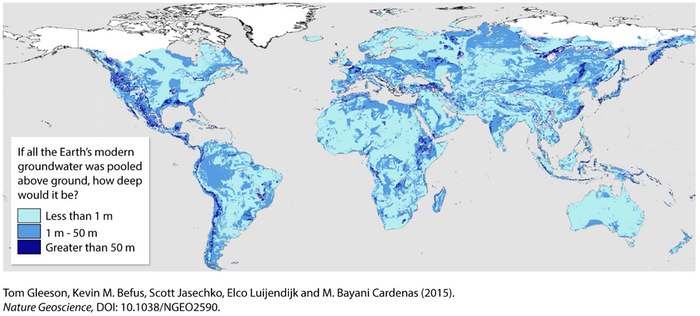 来自维多利亚大学、德克萨斯大学奥斯汀分校、卡尔加里大学和Göttingen大学的研究人员,通过分析大量数据集,并结合4万多个科学模型,得出了一张地下水分布图。该研究估计总共有550万立方英里的地下水。考虑了两种形式的地下水;既古老又现代。古老的地下水位于地球深处,是咸的,同时还含有砷和铀。现代地下水离地表更近,流动速度更快。不幸的是,它也更容易受到气候变化的影响。